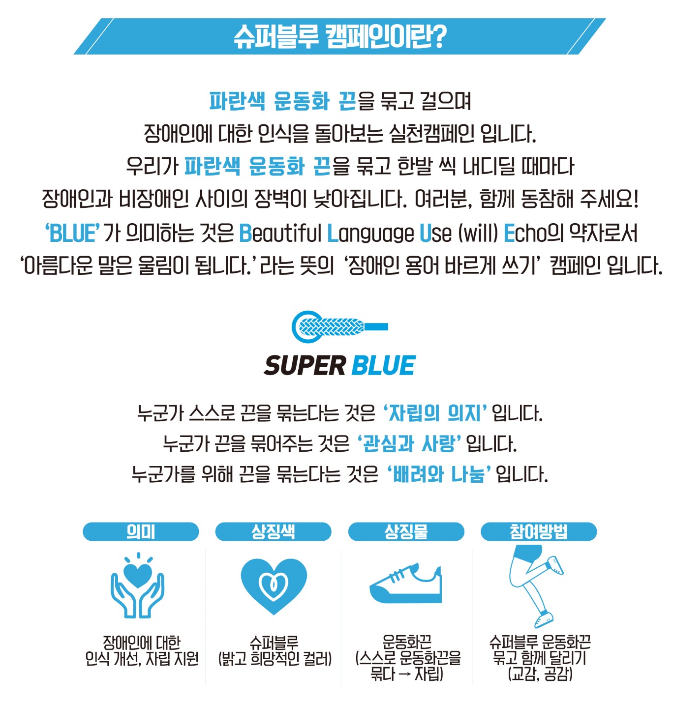 “올해로 10주년을 맞이한 슈퍼블루마라톤은 장애인과 비장애인이 함께 파란 신발 끈을 매고 달리는 특별한 의미의 레이스입니다.”